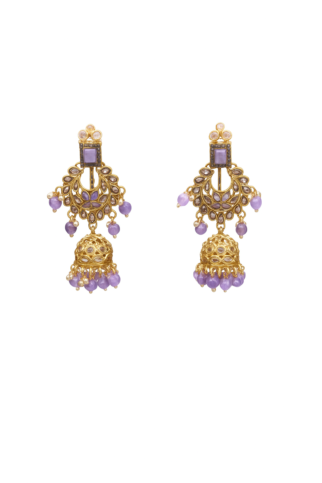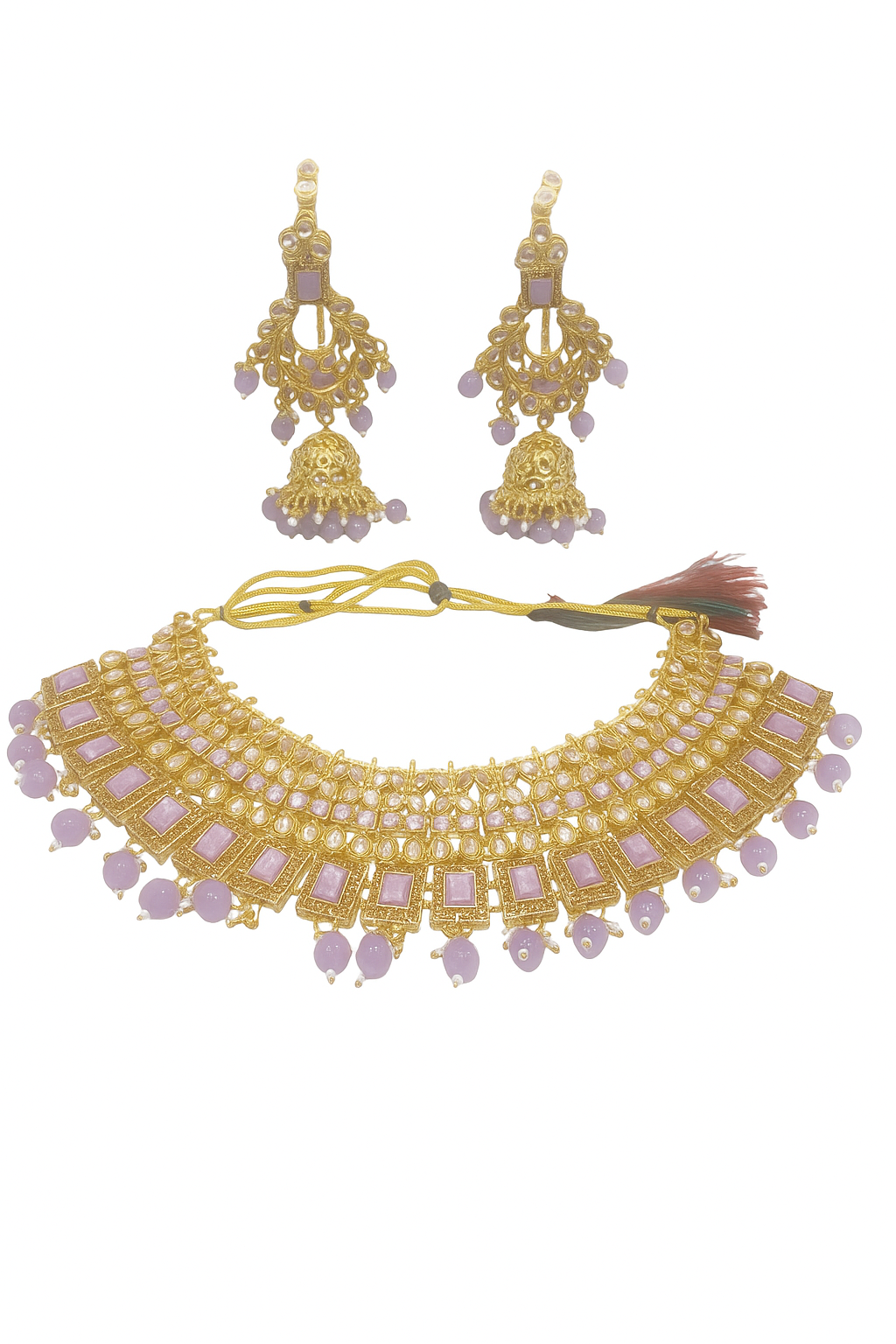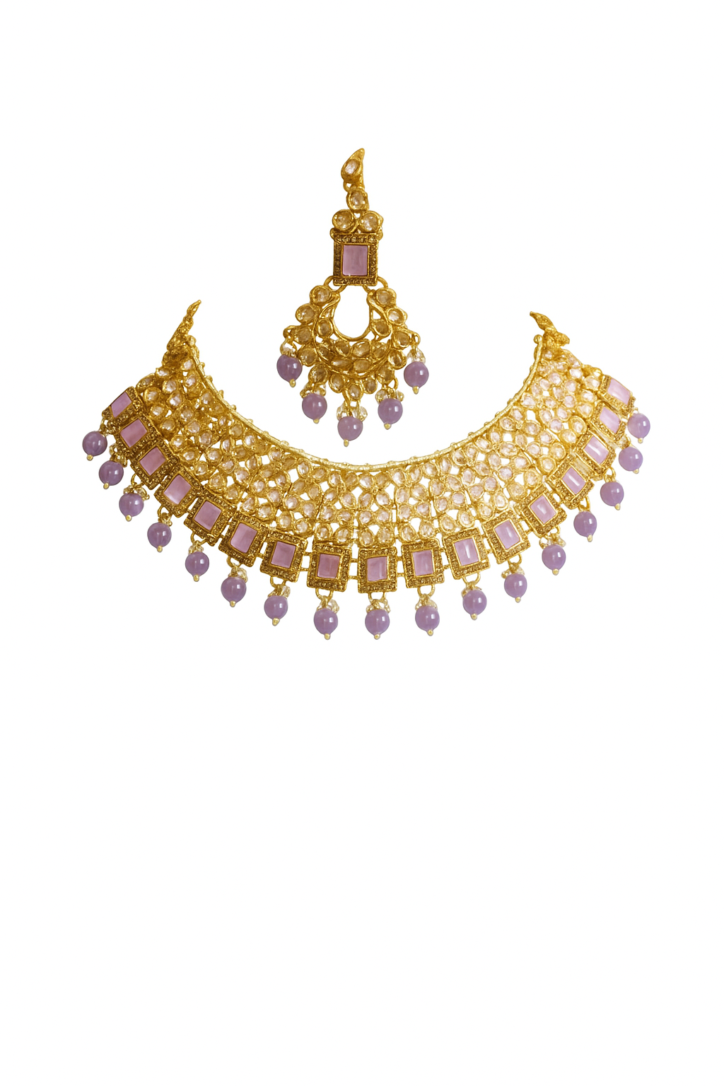 Stone Type : Kundan with Lavender Beads of Cubic Zirconia/American Diamond
